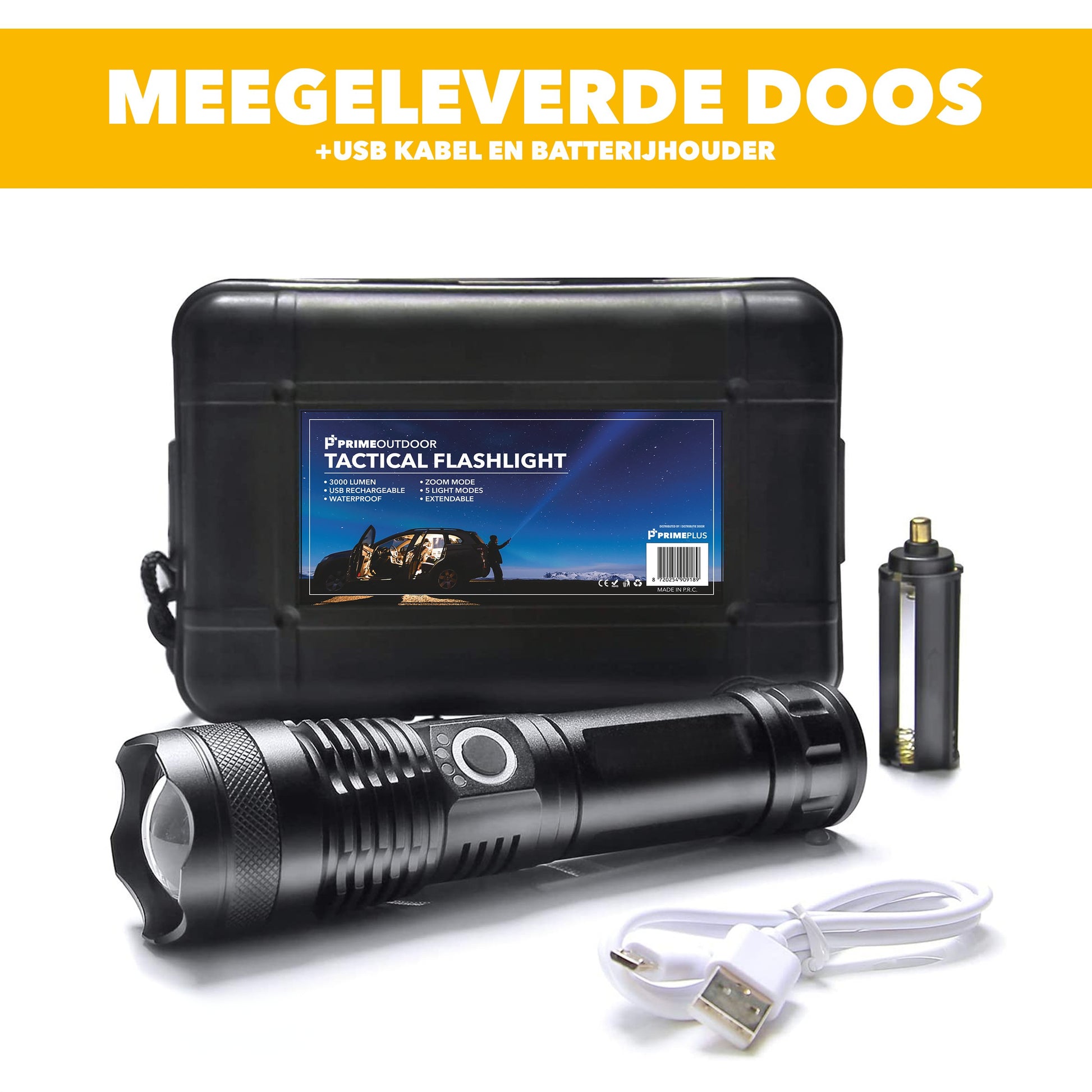 Zaklamp Led Oplaadbaar 3000 Lumen - Militaire Zaklamp - IP65 Waterdicht - Telescopische Zoom - Robuuste Zaklamp - Zaklantaarn in Case